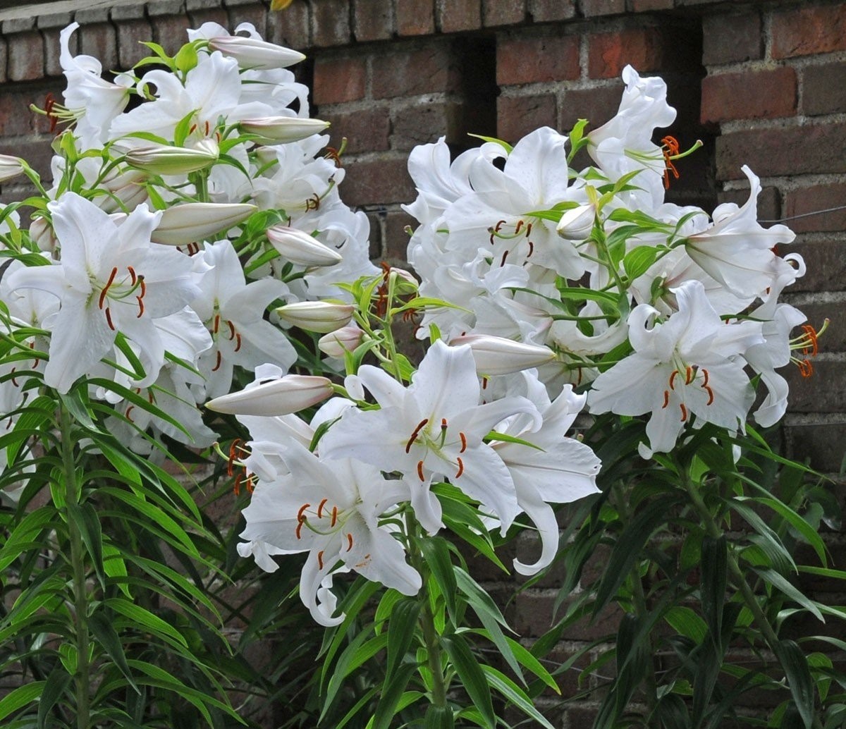 Читать далееKasablanka – это один из самых красивых белоснежных сортов, который одаривает цветоводов роскошными соцветиями исключительно однотонного белого цвета. Растение не маленькое, так как показатели в 120 см – это некая норма для этого восточного сорта. Диаметр бутонов также не маленький и составляет примерно 25 см. Ценность этого сорта еще в том, что на одном цветоносе формируется около девяти соцветий, которые одновременно распускаются.
